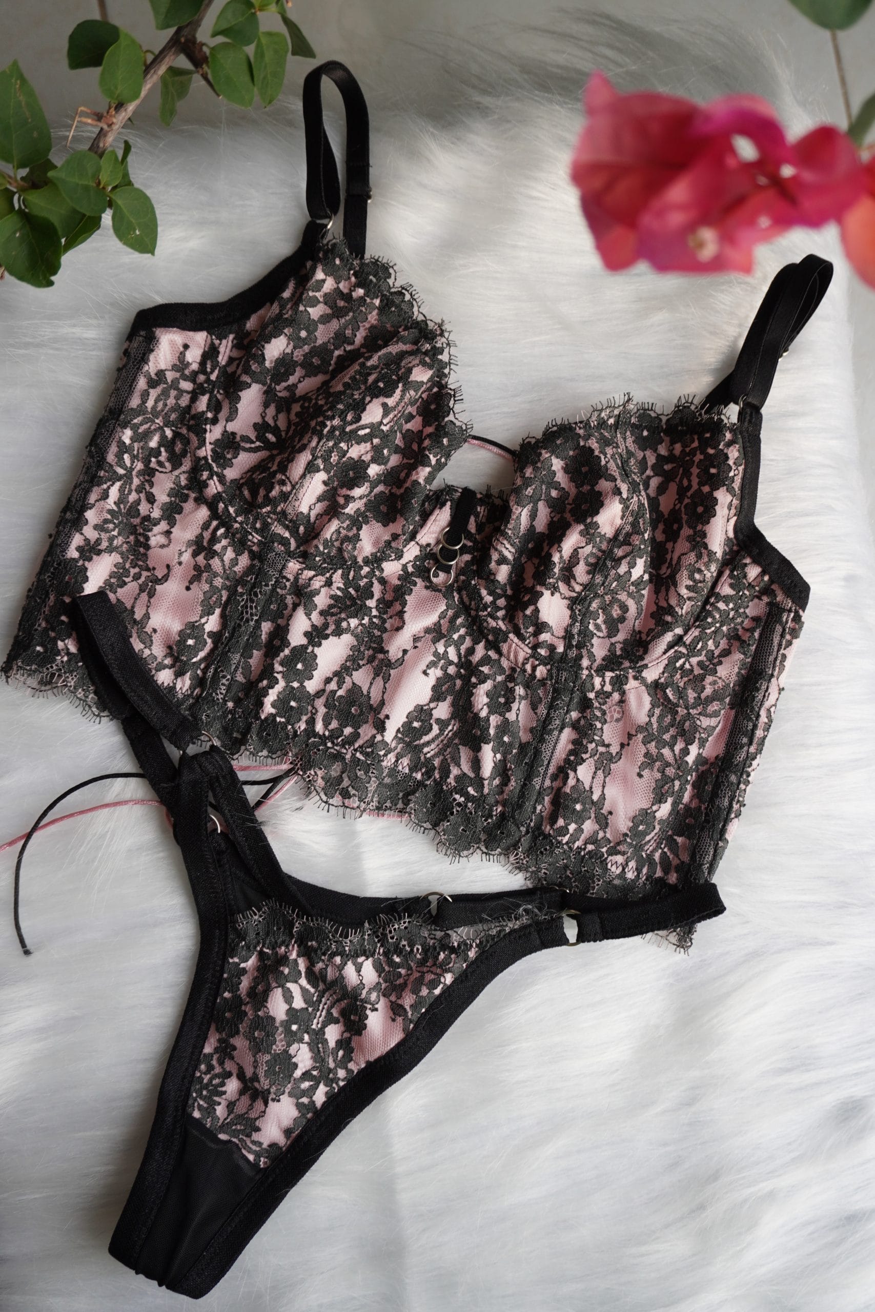 Bustier y tanga en encaje con lazo ajustable en espalda, pocas unidades disponibles 🔥